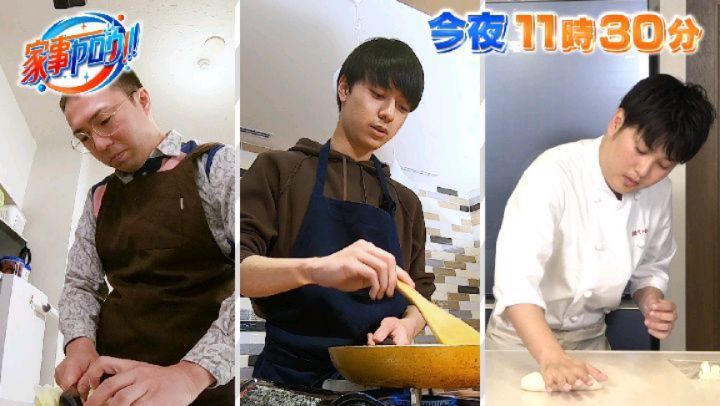 さらに『事務所激推し!家事上級者対抗戦』はバカリズム、カズレーザー、中丸雄一の所属する事務所、マセキ芸能社、サンミュージックプロダクション、ジャニーズ事務所の料理自慢が激突!