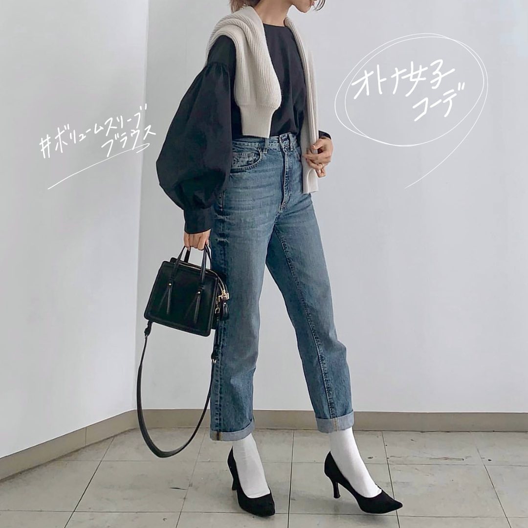 ボリュームスリーブブラウスは、カジュアルにも綺麗めにも、着回し力抜群👌タイトなボトムスに合わせて、スリーブを強調!驚く高見え効果が、実感できるはずです👏