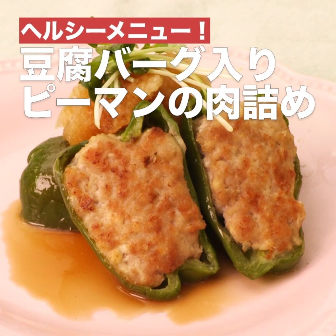 ②<ヘルシーメニュー!豆腐バーグ入りピーマンの肉詰め>