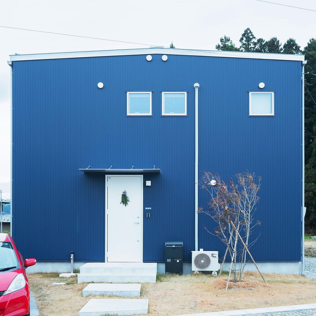 自然が残る環境のなか、正面が真南を向いた配置のお宅は、そのシックな色合いも相まって印象的なたたずまいです。