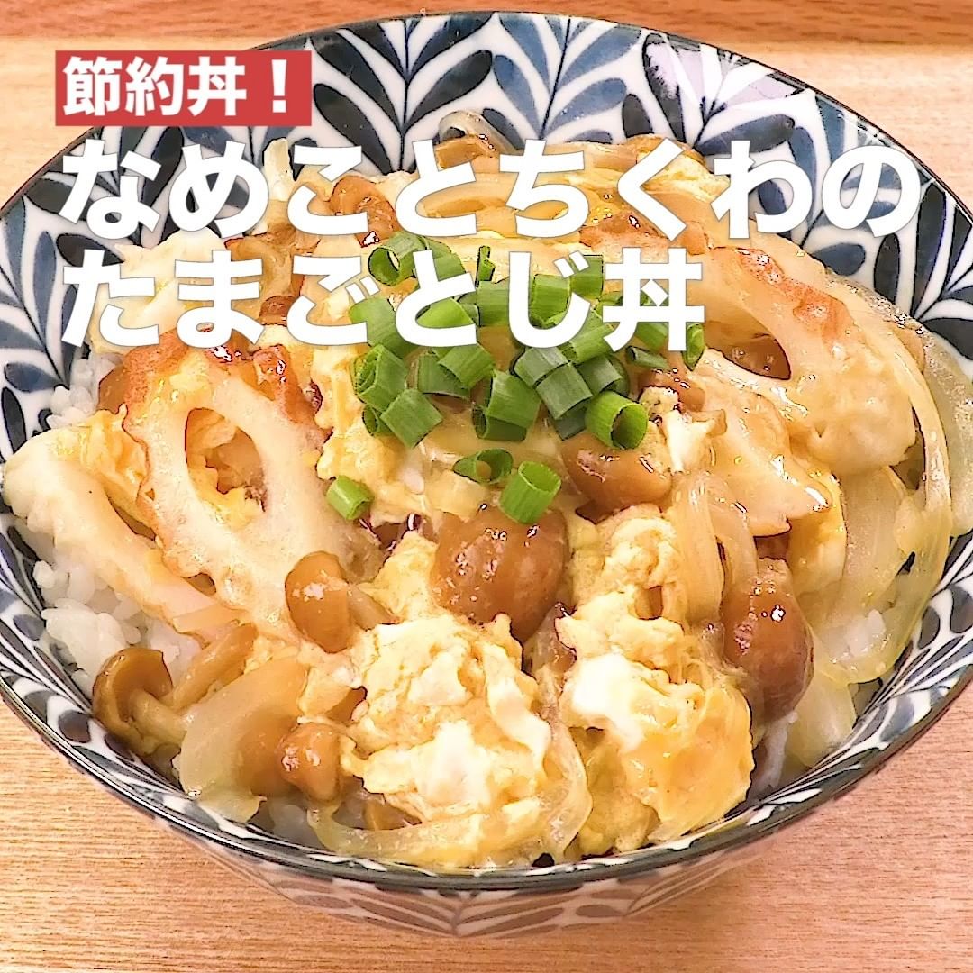 ⑥<節約丼!なめことちくわのたまごとじ丼>