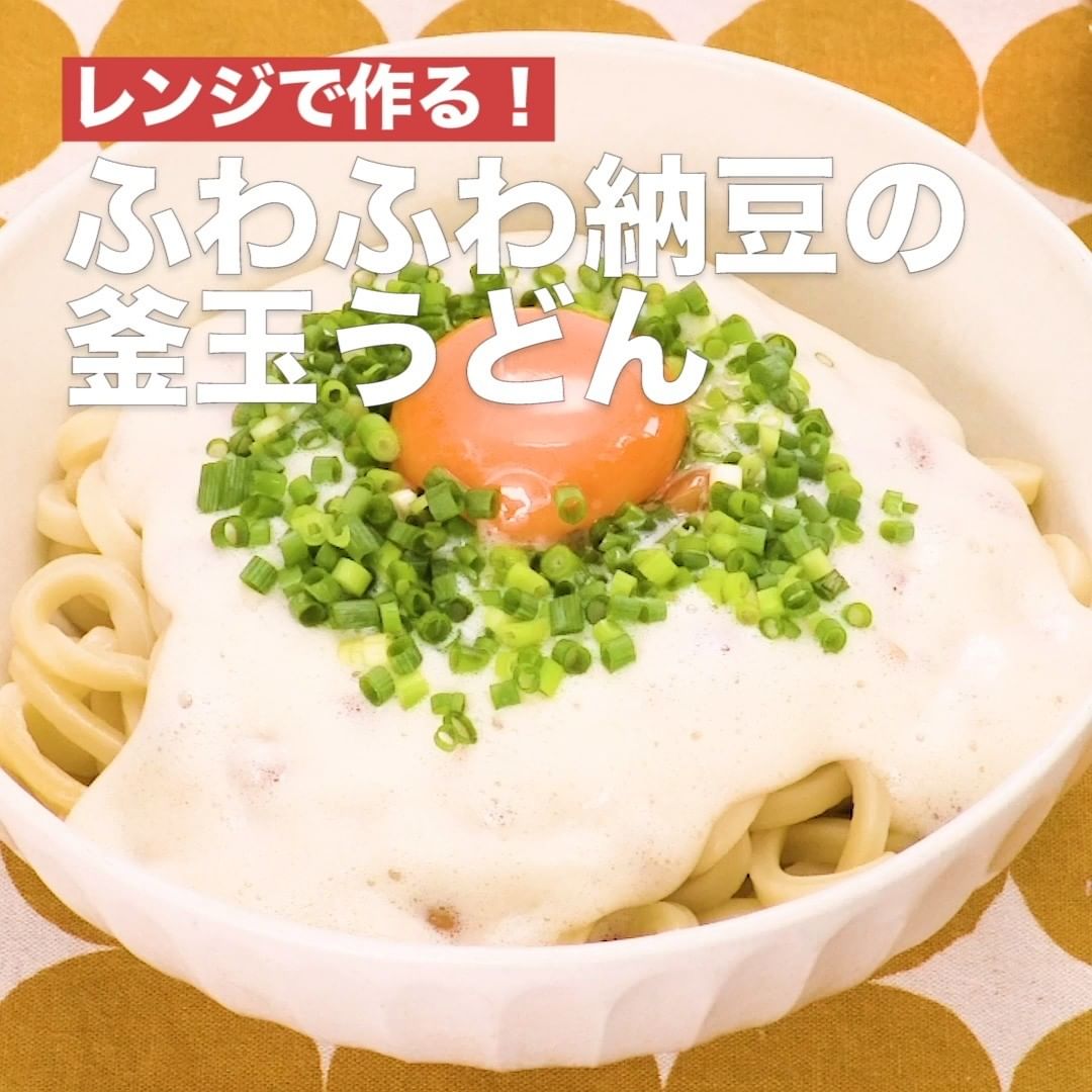 ②<レンジで作る!ふわふわ納豆の釜玉うどん>