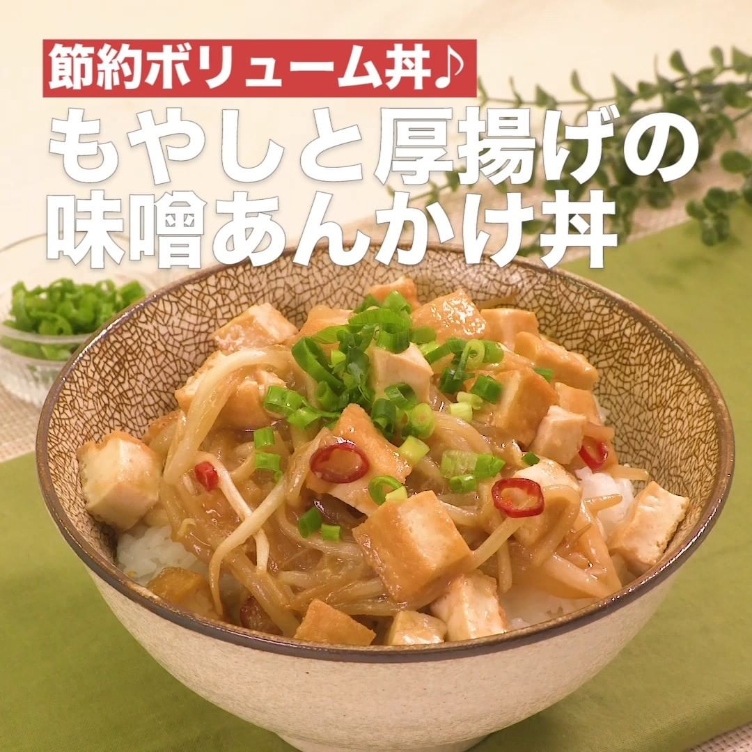 ⑦<節約ボリューム丼♪もやしと厚揚げの味噌あんかけ丼>