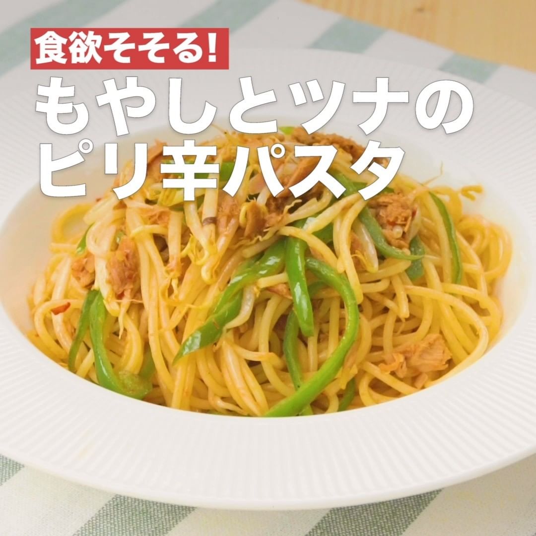 ④<食欲そそる!もやしとツナのピリ辛パスタ>