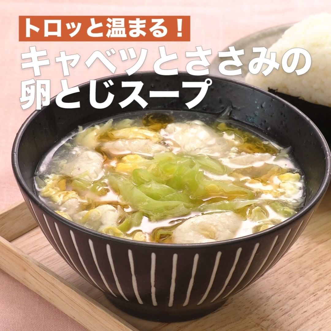 ②<トロッと温まる!キャベツとささみの卵とじスープ>