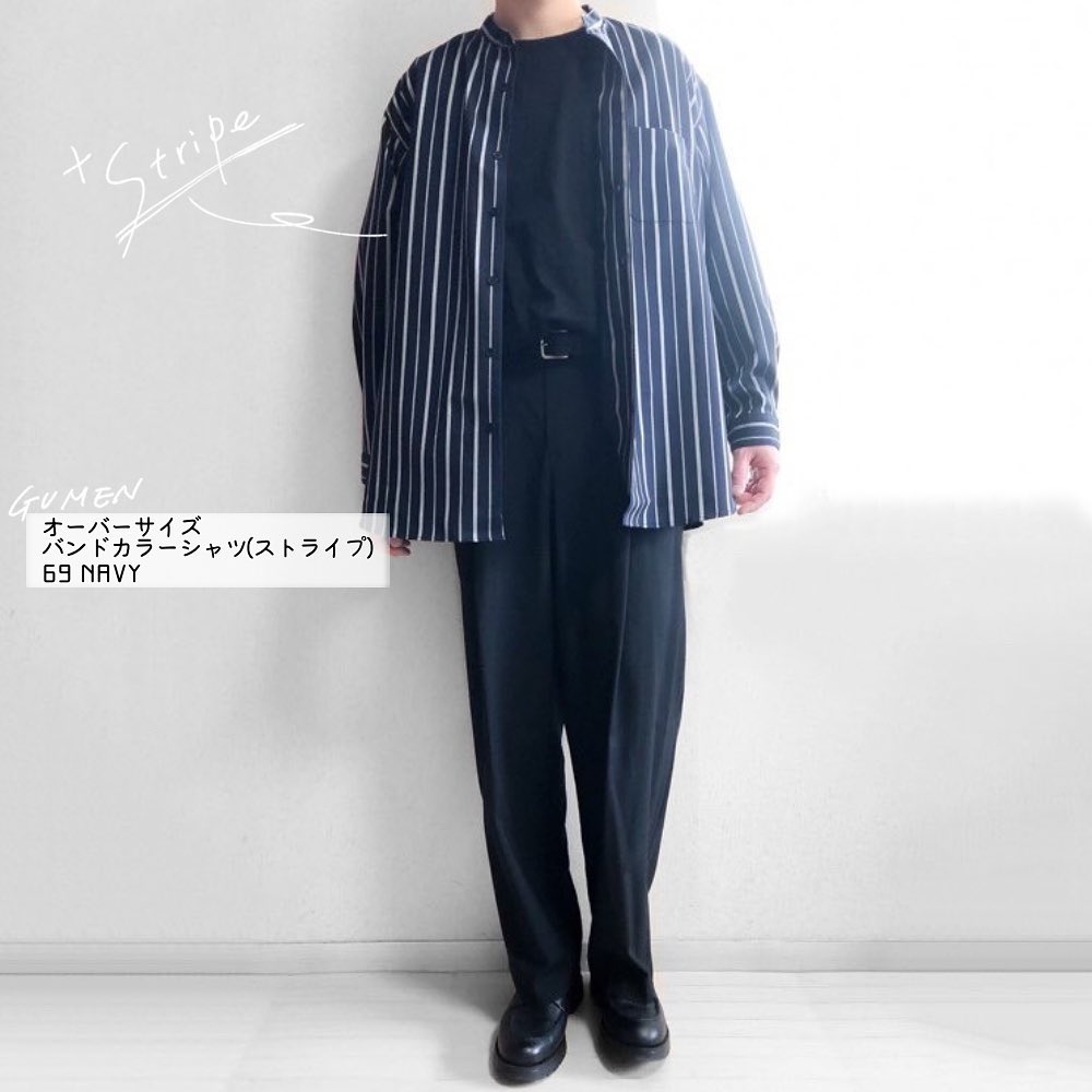 ☑︎オーバーサイズバンドカラーシャツ(長袖)(ストライプ)