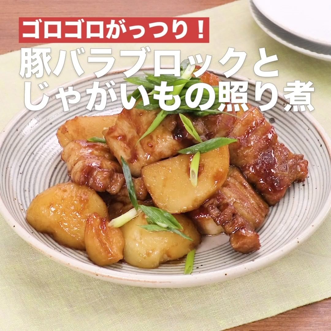 ④<ゴロゴロがっつり!豚バラブロックとじゃがいもの照り煮>