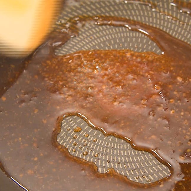 ②別のフライパンにイチゴジャム大さじ1を入れ弱火にかける