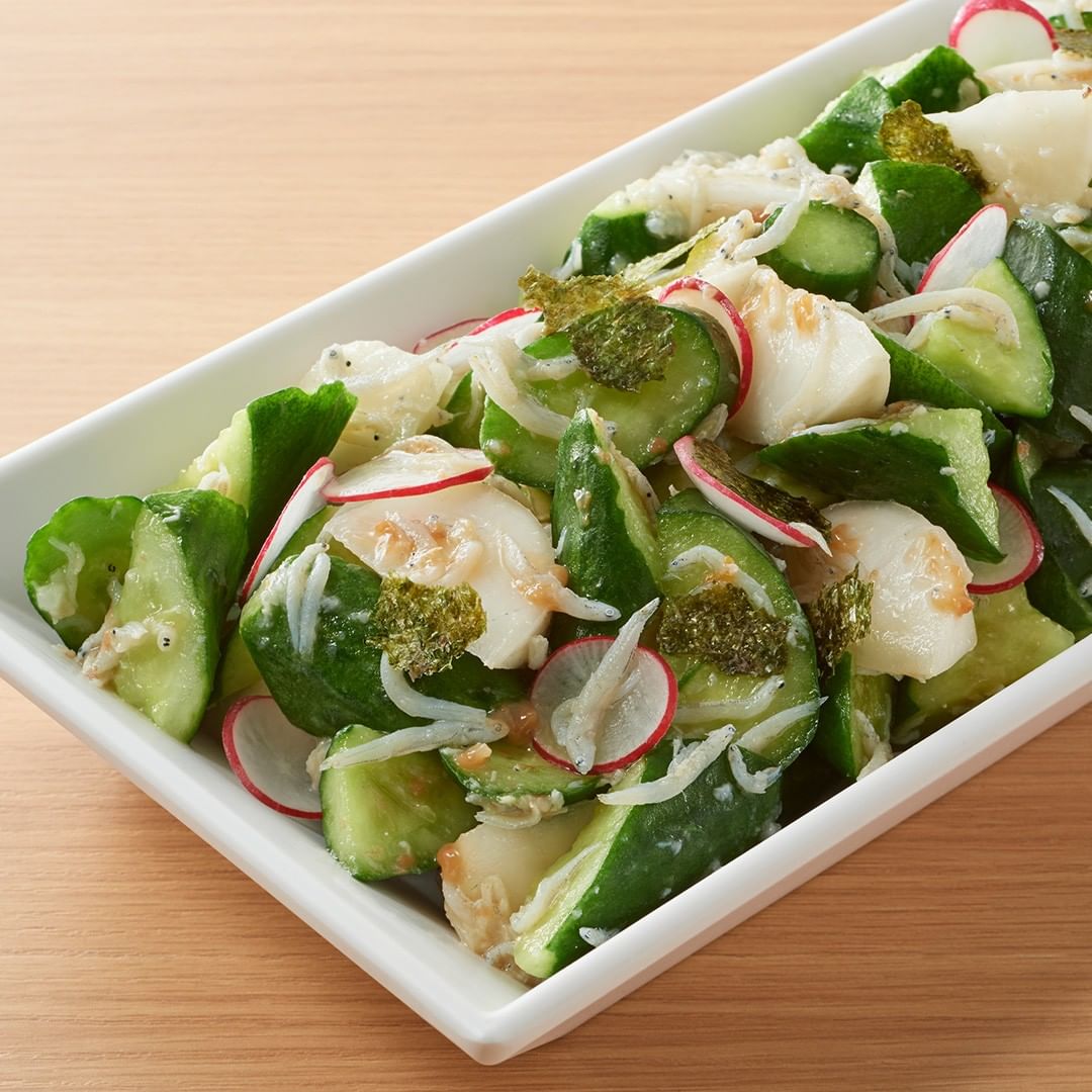 塩こうじでマリネしたきゅうりとかぶに、しらすと梅びしおを加え、さっぱりと仕上げました。