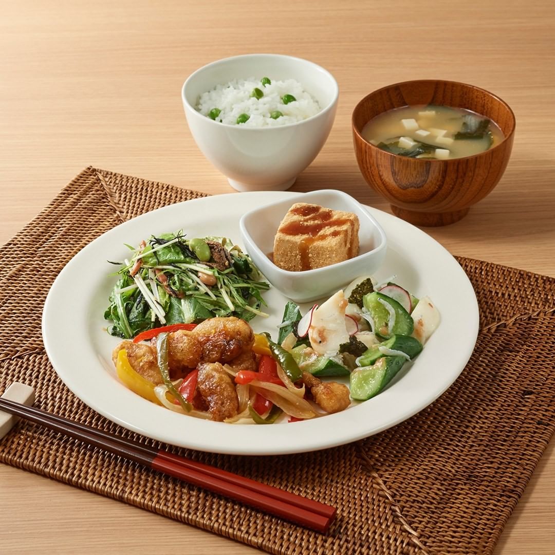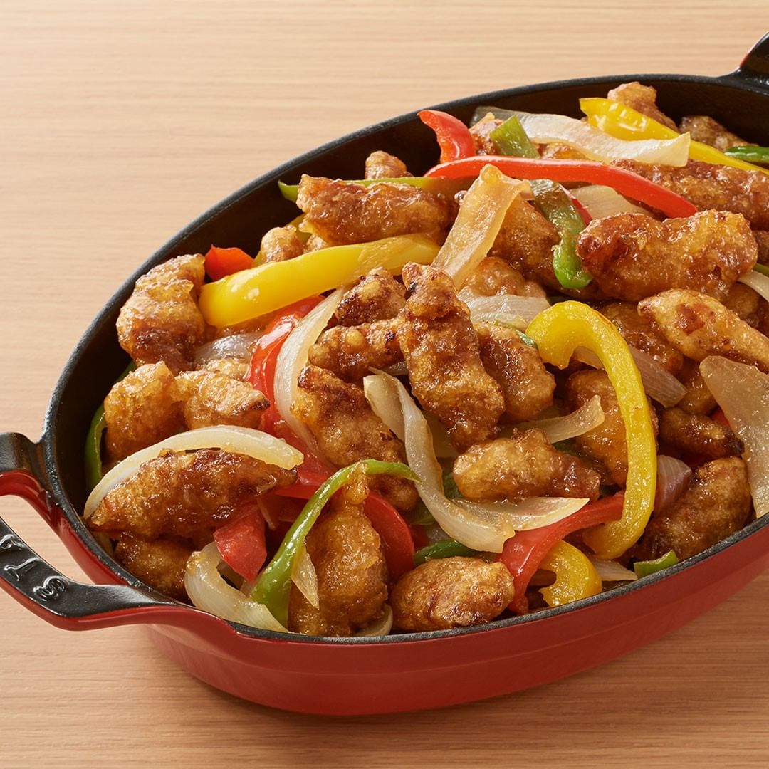 カリッと揚げた大豆ミートのフライを野菜と炒め合わせ、甘酢あんでさっぱりと仕上げました。