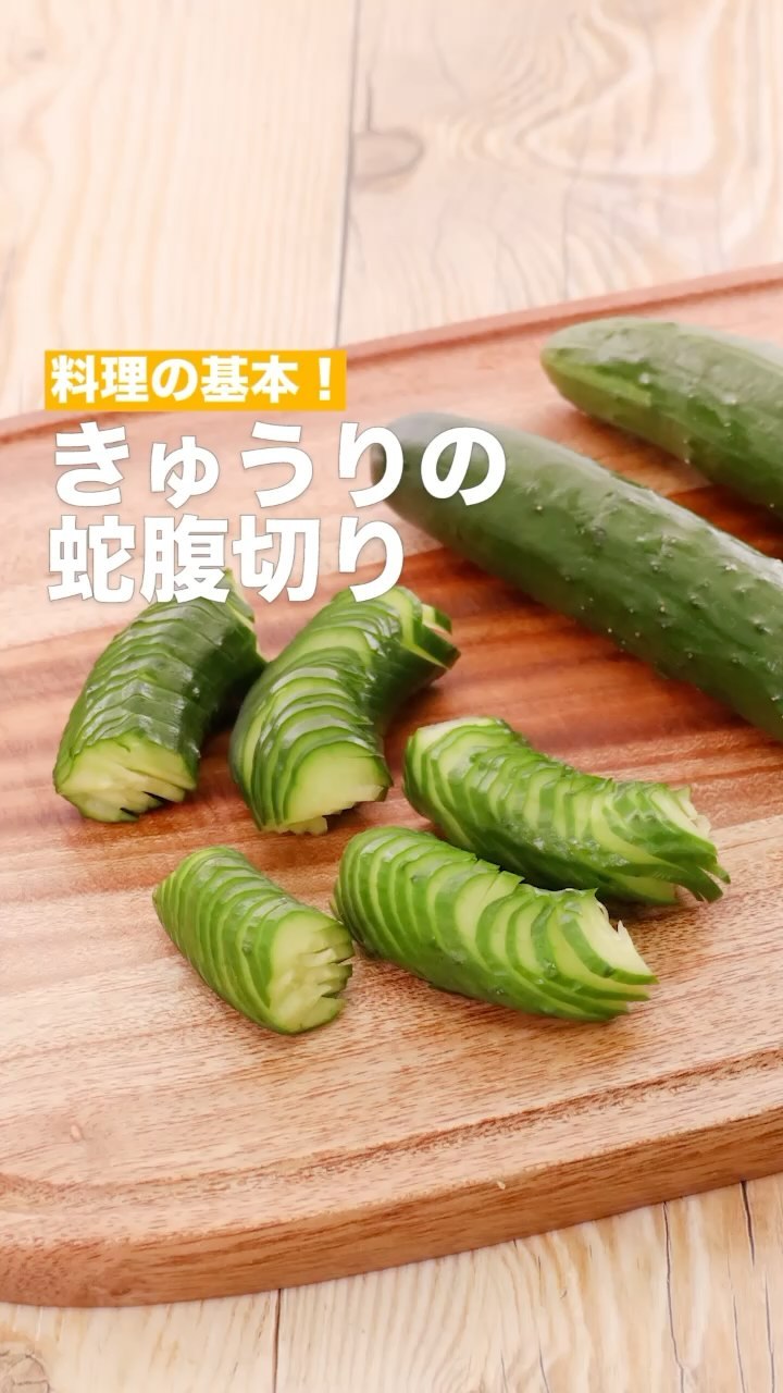 見た目も華やかで味も染み込みやすくなる蛇腹切り(じゃばらぎり)!酢の物などに使用する際は、切った後に塩をふってしんなりとしてから水で洗い水気をしぼってから使用するのがおすすめです♪