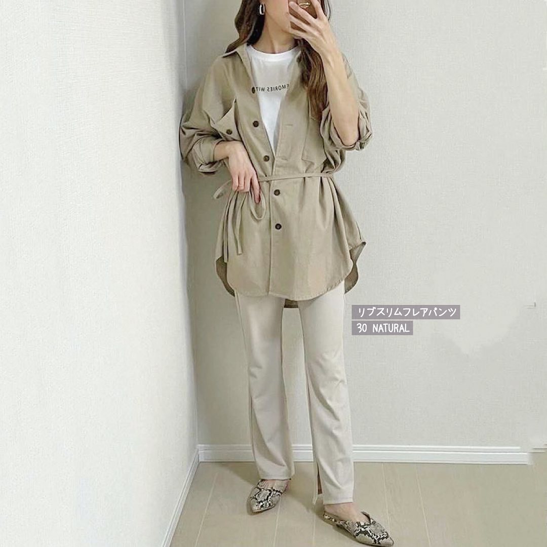 動ける美脚👌人気のリブフレアパンツが、更にきれいシルエット✨リブ素材が、縦のラインを強調して、スタイルUP👏とっても素敵に着こなせますね🥰足元の内側スリットが、チラリと足首見せしてくれて、動くたびにお洒落👍シューズ合わせも楽しくなりますね😘いちまい持っていると、重宝するパンツ🙌是非、チェックしてみてくださいね💁♀️💕
