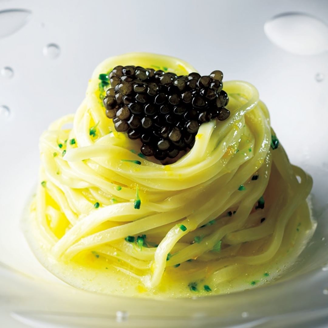 写真5▷「キャビアの冷製パスタ」のパスタはハマグリ出汁で調味。
