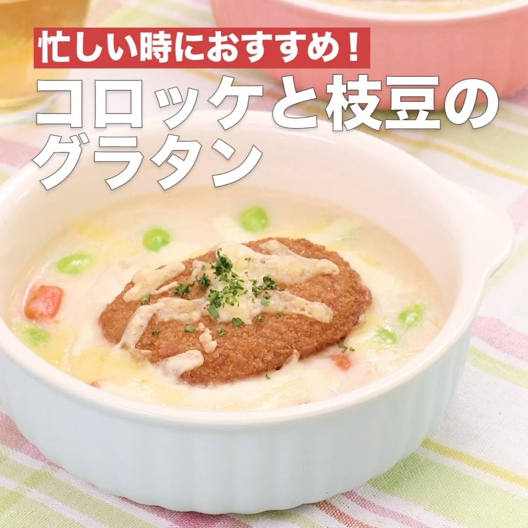 ⑧<忙しい時におすすめ!コロッケと枝豆のグラタン>