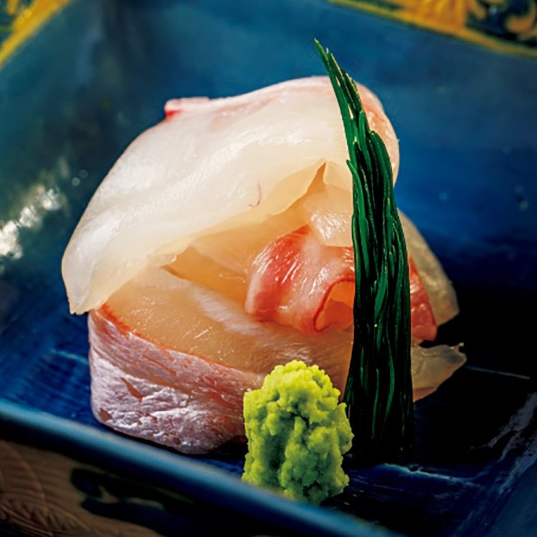 やや厚みを持たせてそぐように切りだし、香り、味、鯛のモチッとした食感を生かしている