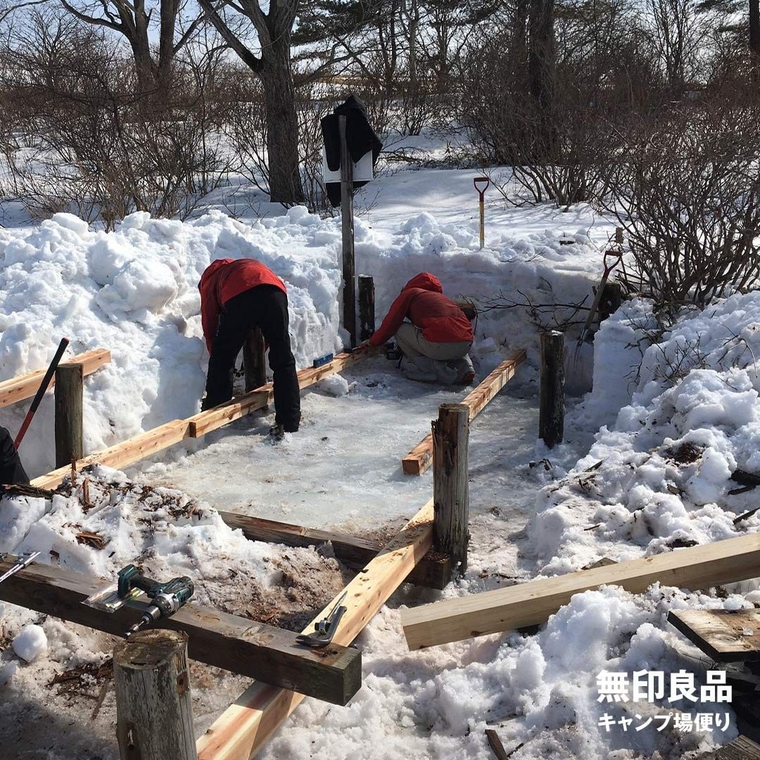 雪がとけてから行う天板の張りつけを残し、この日の作業は終了。