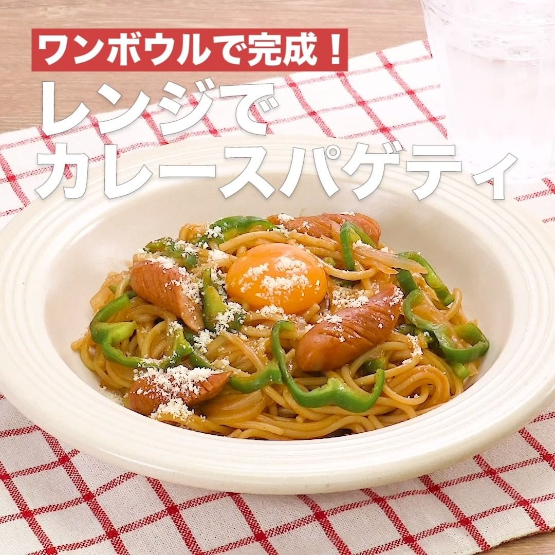 ④<ワンボウルで完成!レンジでカレースパゲティ>