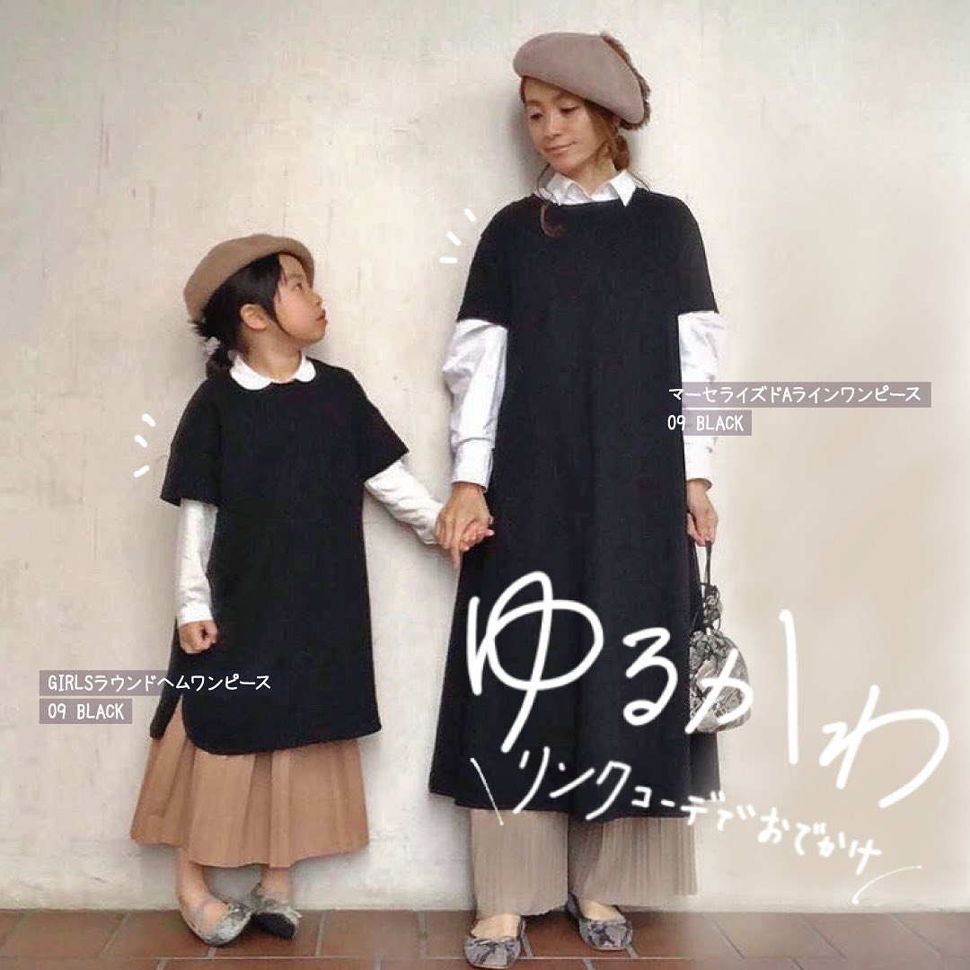 #GIRLSラウンドヘムワンピース #マーセライズドAラインワンピース #親子リンク #リンクコーデ #リアルコーデ #プチプラコーデ #高見えコーデ #お出かけコーデ