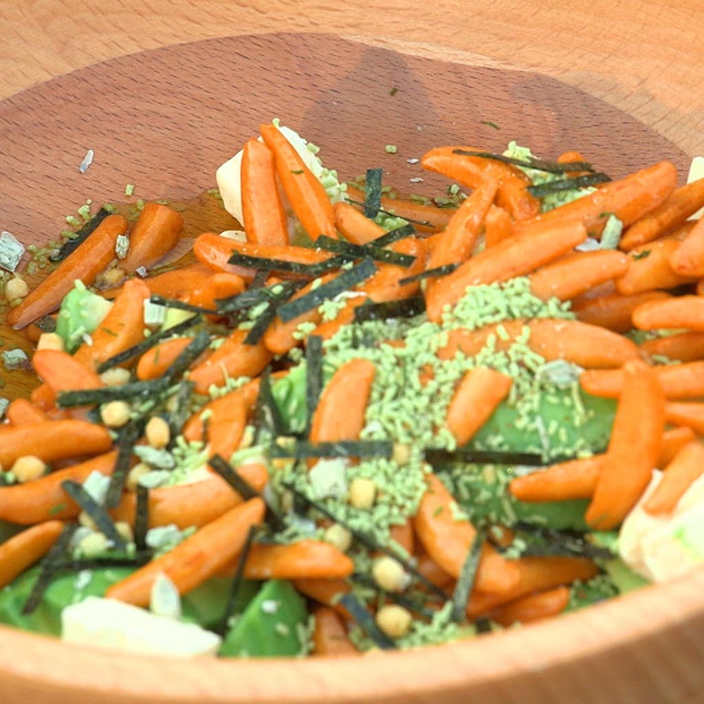 @Kajiyarou Kajiyarou: 『お茶漬けの素サラダ』 ①アボカド1/2個とクリームチーズ50gを1.5cm角の角切りにする ②ボウルに入れ、お茶漬けの素(わさび味)1袋、柿の種( 2021-03-23 『お茶漬けの素サラダ』 ①アボカド1/2個とクリームチーズ50gを1.5cm角の角切りにする ②ボウルに入れ、お茶漬けの素(わさび味)1袋、柿の種(ピーナッツなし)25g、オリーブオイル小さじ2を加え和えたら完成! ★アウトドアライター関美奈子さんのレシピを家事ヤロウ風にアレンジ! ★海苔とチーズは相性抜群! ★柿の種のザクザク食感がアクセントに #家事ヤロウ #キャンプ #ベランピング #camping Ciao, Nihon.