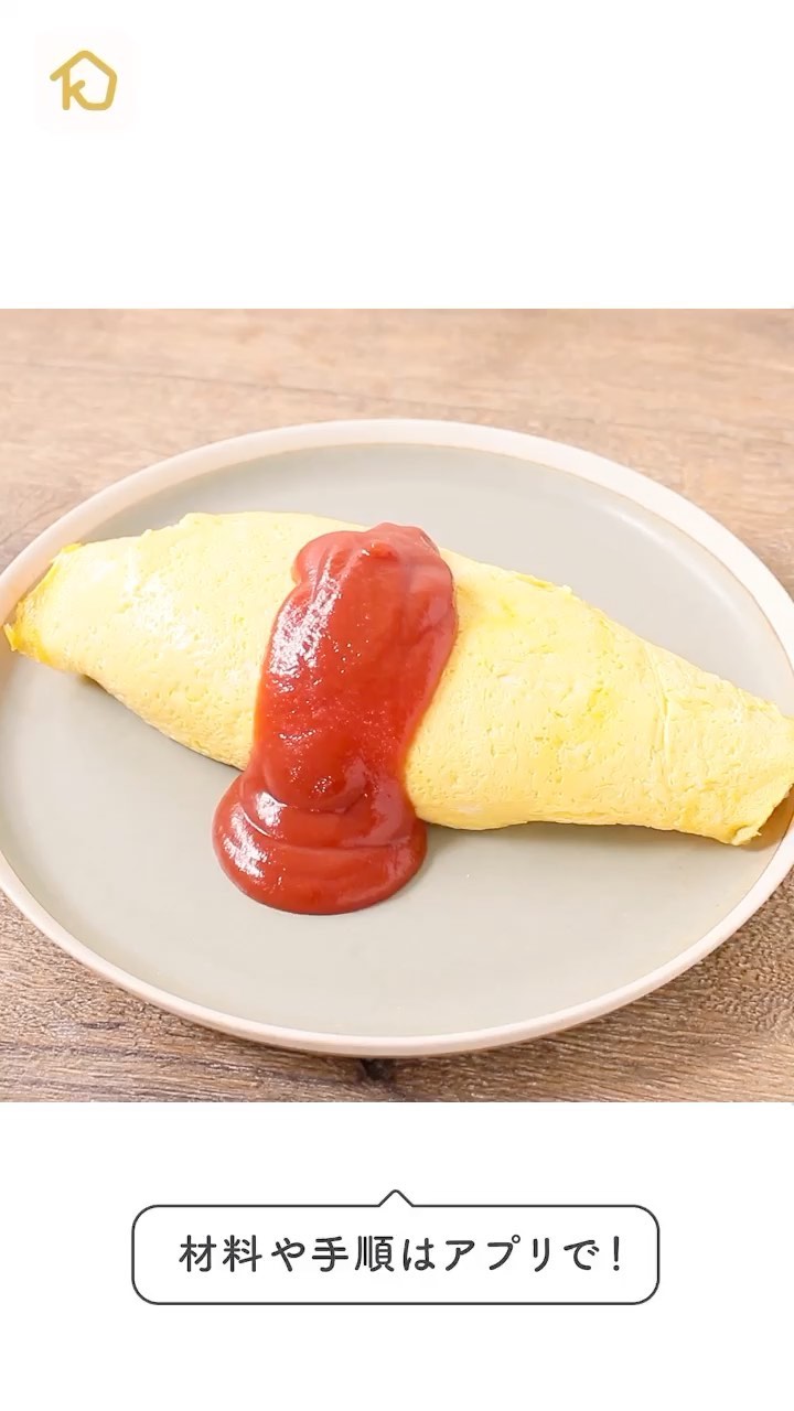 4. 1をのせて包み、形を整えます。器に盛り付け、ケチャップをかけて完成です。