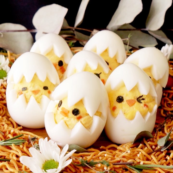 5. ベビースターラーメンで巣を作り、飾り付けたら完成。顔をそれぞれおかえると可愛いよ!