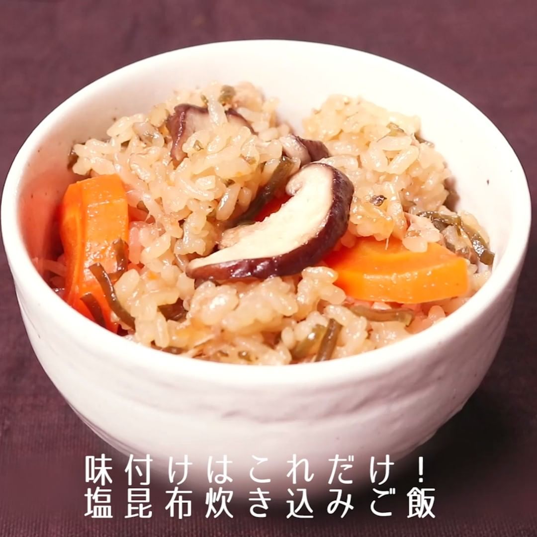 ②味付けはこれだけ!塩昆布炊き込みご飯