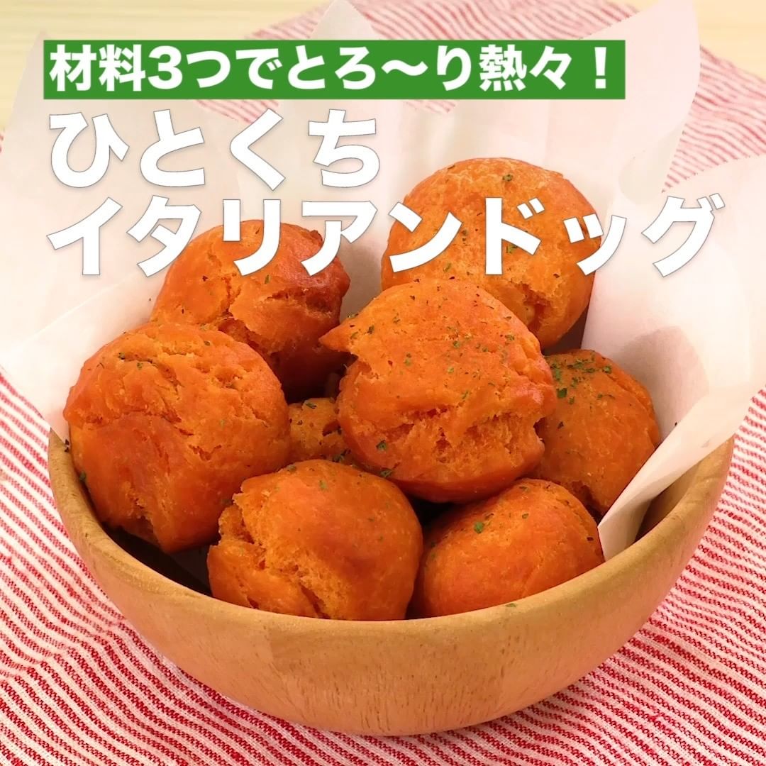 ⑧<材料3つでとろ〜り熱々!ひとくちイタリアンドッグ>
