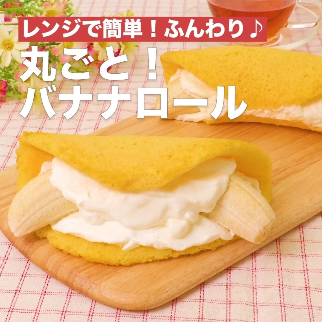 ④<レンジで簡単!ふんわり♪丸ごと!バナナロール>