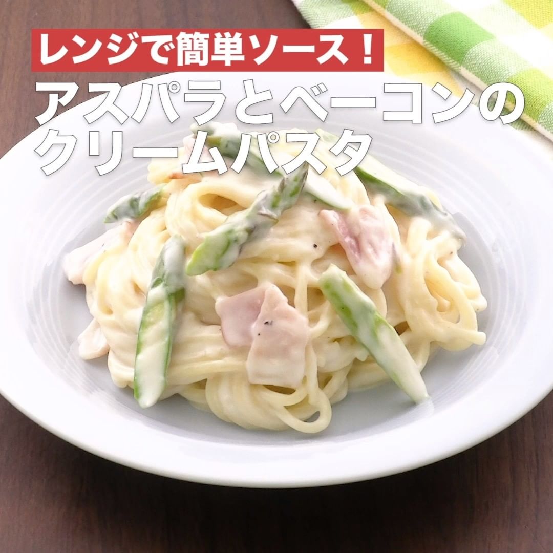 ⑤<レンジで簡単ソース!アスパラとベーコンのクリームパスタ>