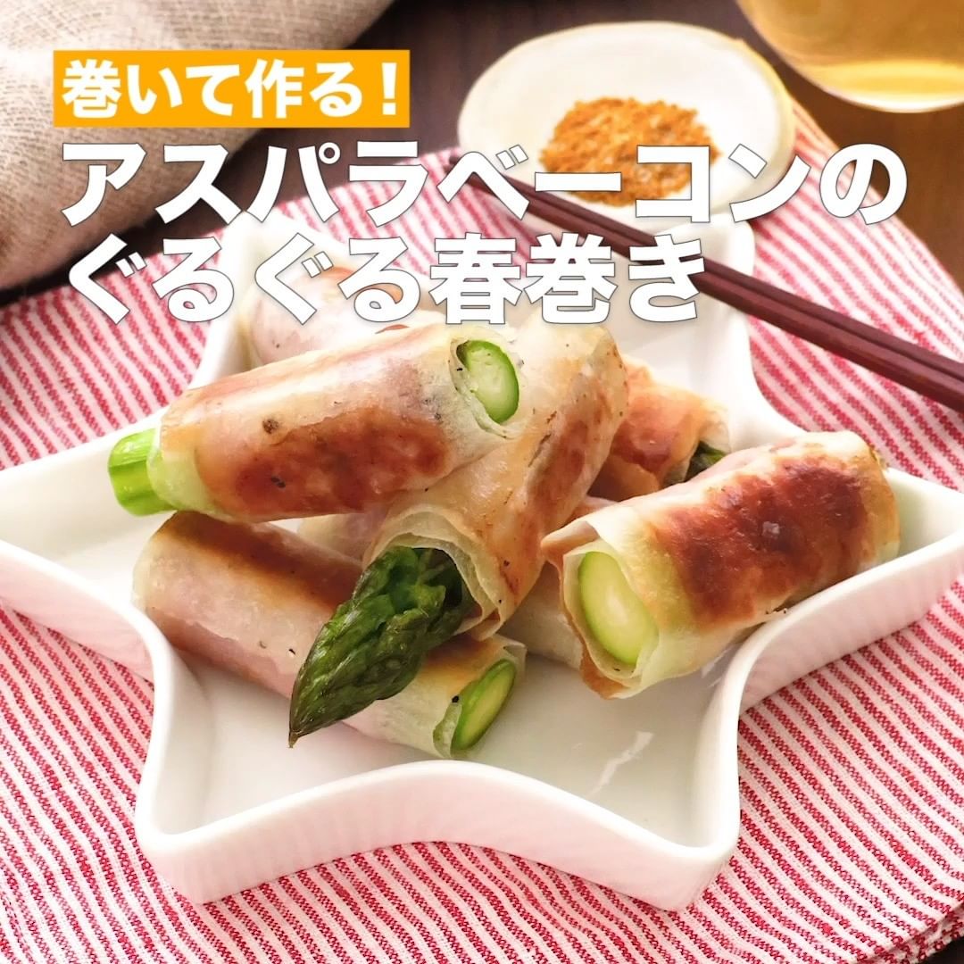 ⑧<巻いて作る!アスパラベーコンのぐるぐる春巻き>