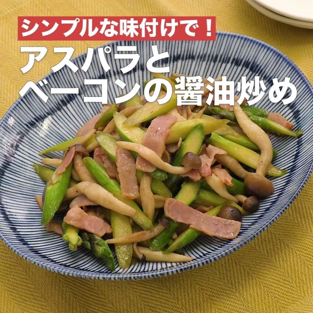 ④<シンプルな味付けで!アスパラとベーコンの醤油炒め>
