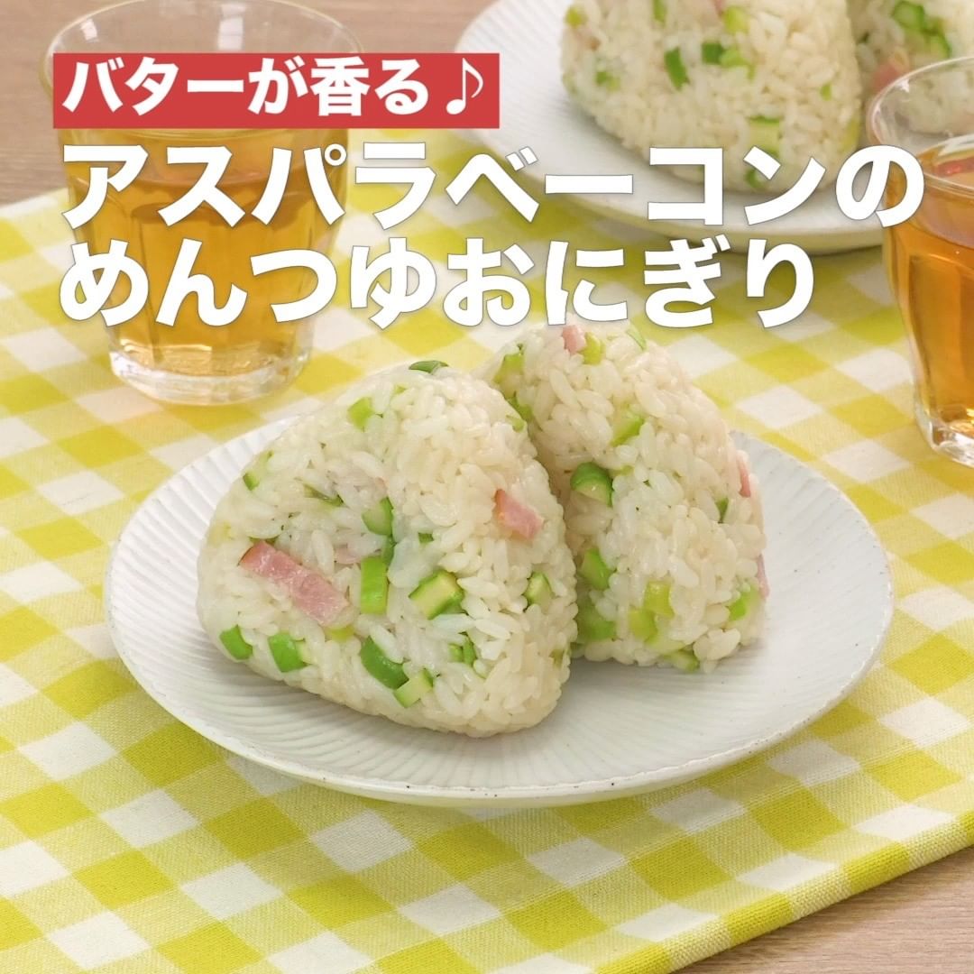 ③<バターが香る♪アスパラベーコンのめんつゆおにぎり>