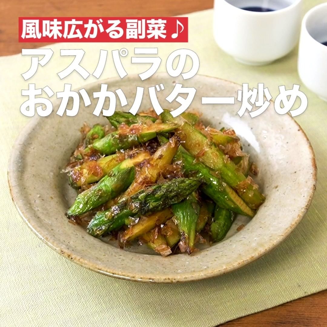 ⑦<風味広がる副菜♪アスパラのおかかバター炒め>