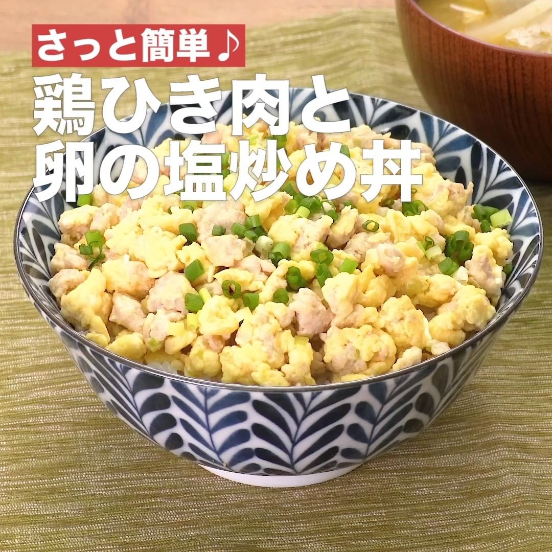 ②<さっと簡単♪鶏ひき肉と卵の塩炒め丼>