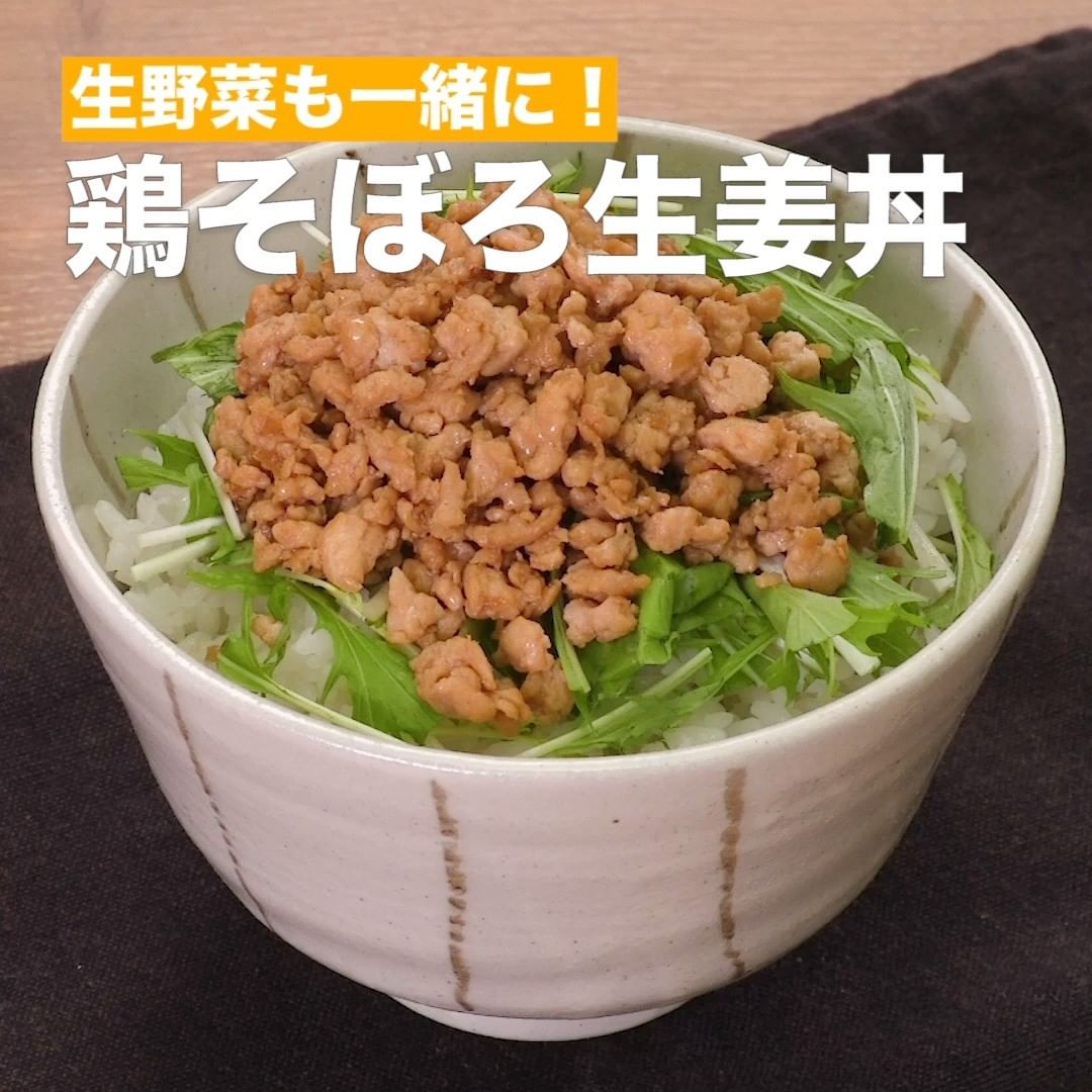 ⑧<生野菜も一緒に!鶏そぼろ生姜丼>