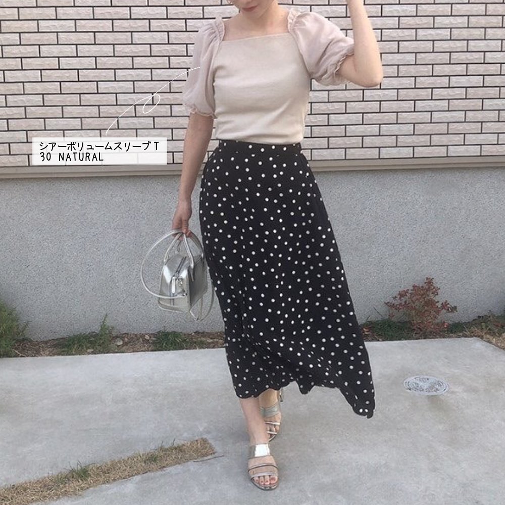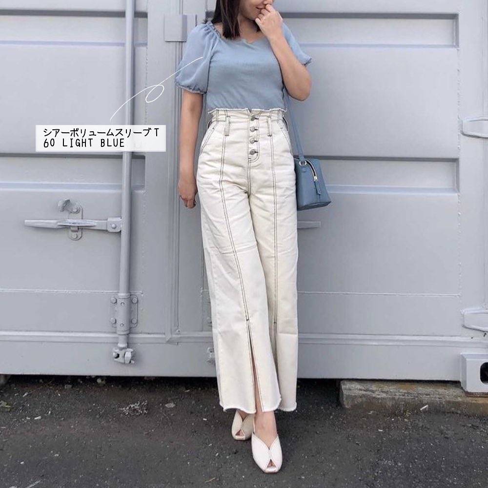 シアーなボリュームスリーブが、さりげなく可愛い😍甘さをプラスした着こなしが、爽やかな季節にもってこいですね👌カラーも、旬色でGOOD👍きれいめにもカジュアルにもおすすめです🙌是非、チェックしてみてくださいね💁♀️💕