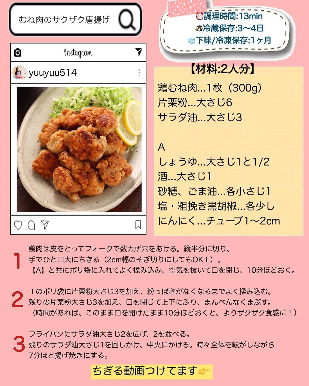 𓎩 #むね肉のザクザク唐揚げ