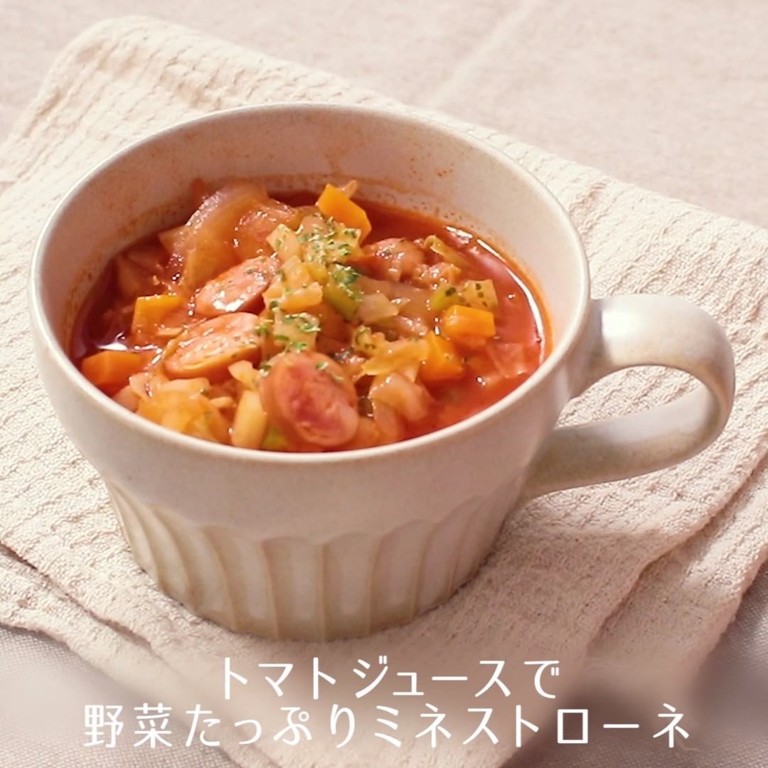 ⑦トマトジュースで 野菜たっぷりミネストローネ