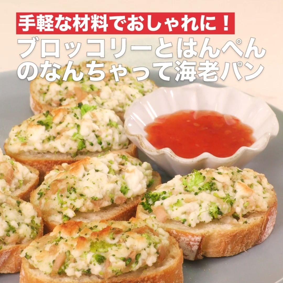 ③<手軽な材料でおしゃれに!ブロッコリーとはんぺんのなんちゃって海老パン>