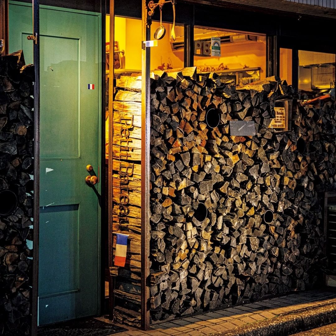 写真②▷薪が積まれた外観は、渋谷の喧騒とかけ離れた落ち着いた佇まい
