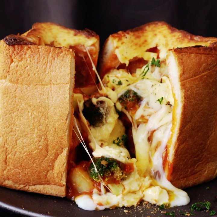 3. 庫内の大きめなトースターか200度に熱したオーブンで温め、卵を半熟に加熱できれば完成! (目安:オーブンは10分。トースターはヒーター部分と近くなるので、色が強く付いてしまいそうだったらアルミホイルをかける。) facebookも公開中!Tastemade japanで検索してくださいね。