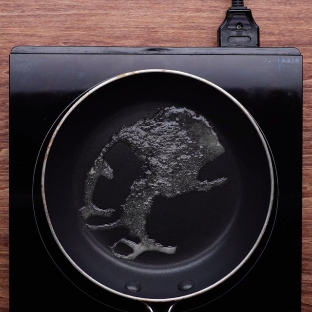 3.フライパンにバターを入れて火にかけ、バターが溶けてきたら食パンを1枚入れる。