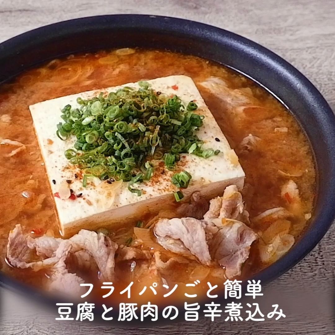 ①フライパンごと簡単 豆腐と豚肉の旨辛煮込み