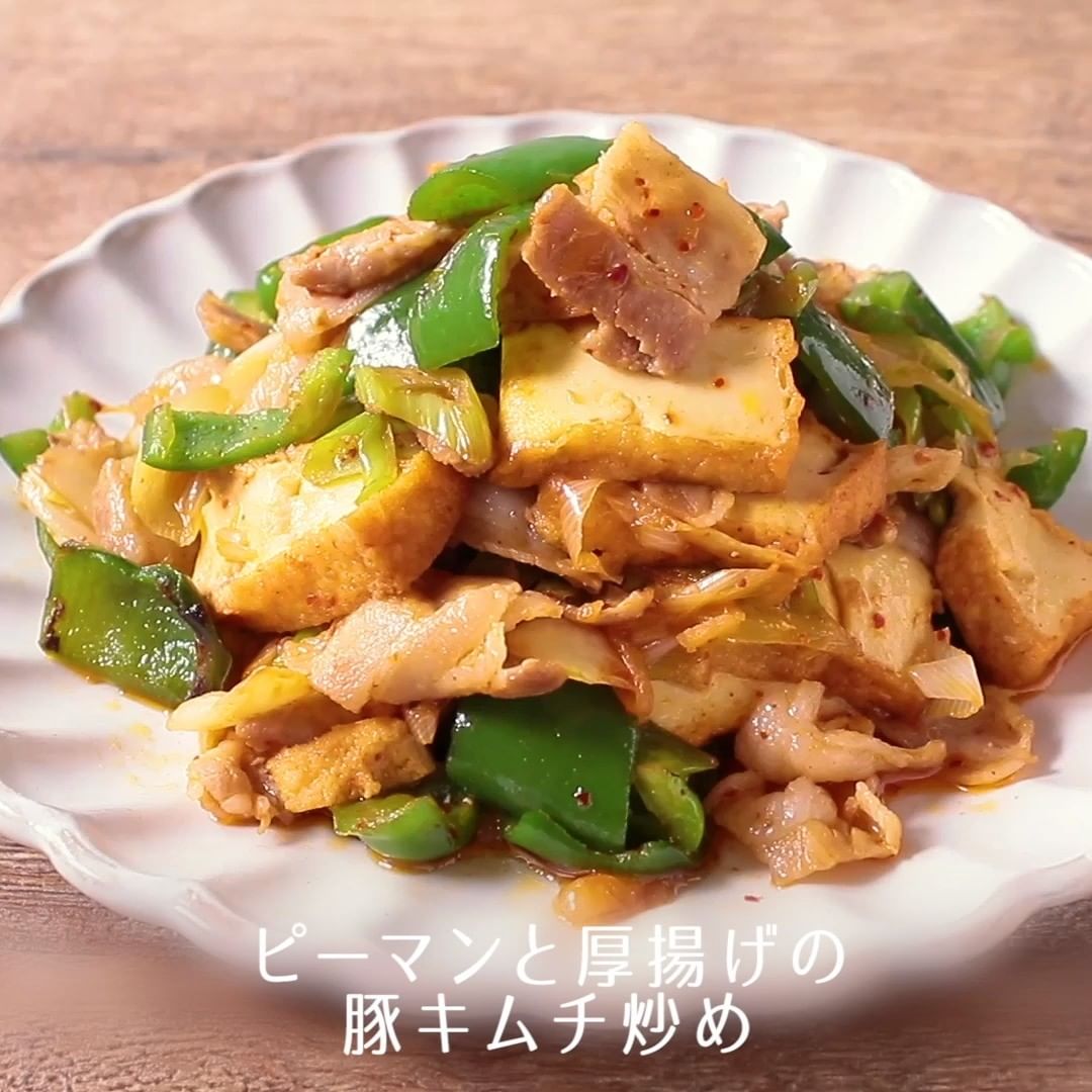 ⑤ピーマンと厚揚げの豚キムチ炒め