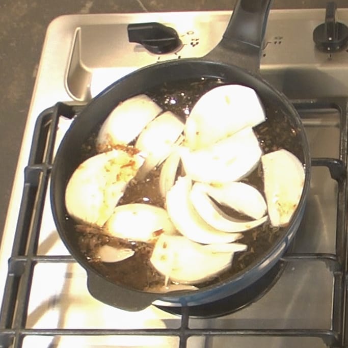 ③新玉ねぎが柔らかくなったら、味噌大さじ3を入れる