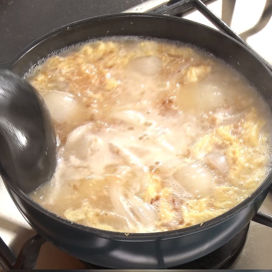 ④沸騰している場所に溶き卵を数回に分けて入れる