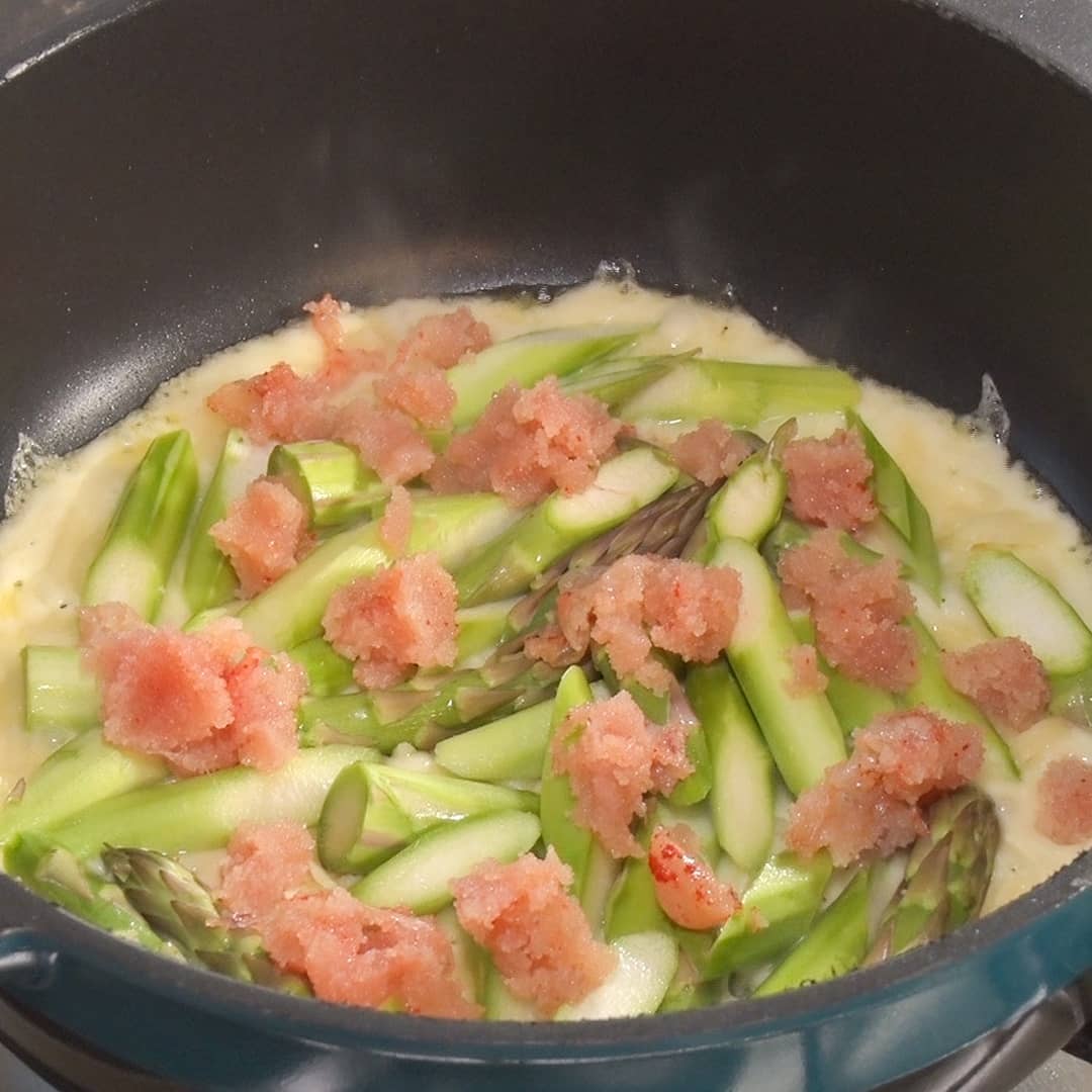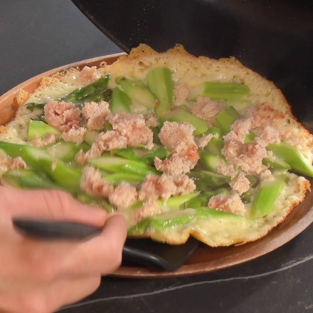 @Kajiyarou Kajiyarou: 和田明日香さんの『アスパラと明太子のチーズ焼き』 ①アスパラ8本を根元の皮をむき、約3センチの斜め切りにする ②フライパンにピザ用チーズ80gを敷き 2021-04-06 和田明日香さんの『アスパラと明太子のチーズ焼き』 ①アスパラ8本を根元の皮をむき、約3センチの斜め切りにする ②フライパンにピザ用チーズ80gを敷き詰める ③チーズの上にアスパラを散らす ④明太子1個を大きめにちぎってのせ、中火で4?5分放っておく。 ⑤チーズが溶けて周りがカリッと焼き固まったら、皿に盛り付け黒コショウを振りかければ完成! #家事ヤロウ #和田明日香 #リアル家事24時 #cooking #food Ciao, Nihon.