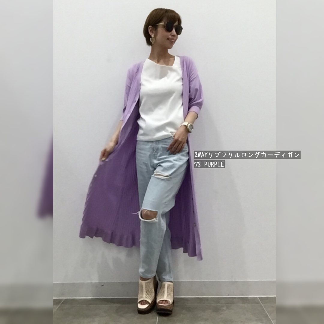 ☑︎2WAYリブフリルロングカーディガン(5分袖)Z+E