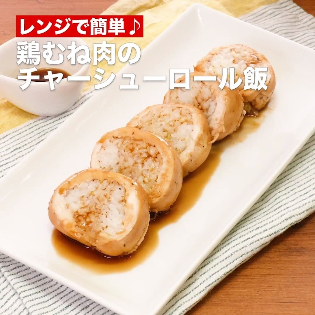 ④<レンジで簡単♪鶏むね肉のチャーシューロール飯>