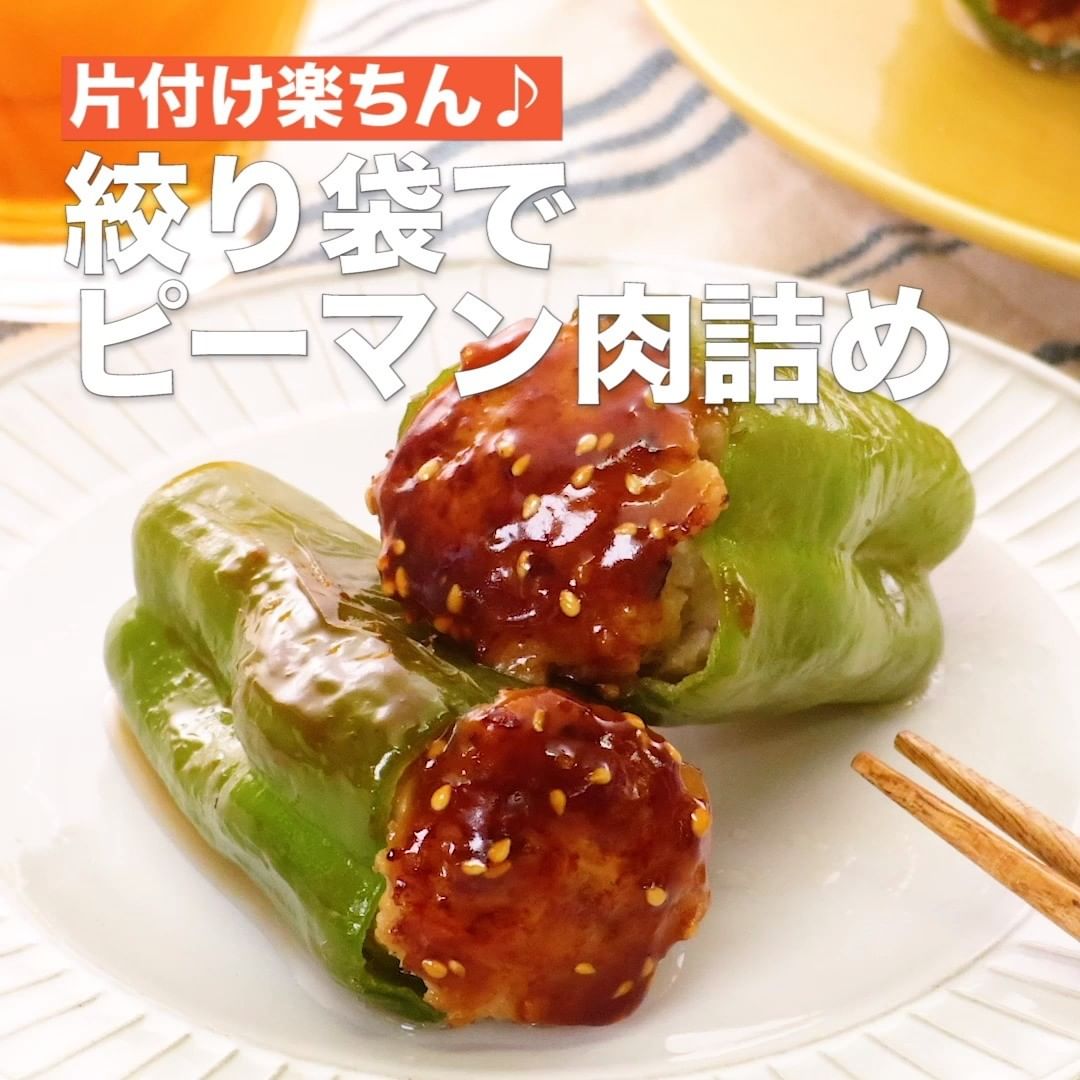 ⑨<片付け楽ちん♪絞り袋でピーマン肉詰め>